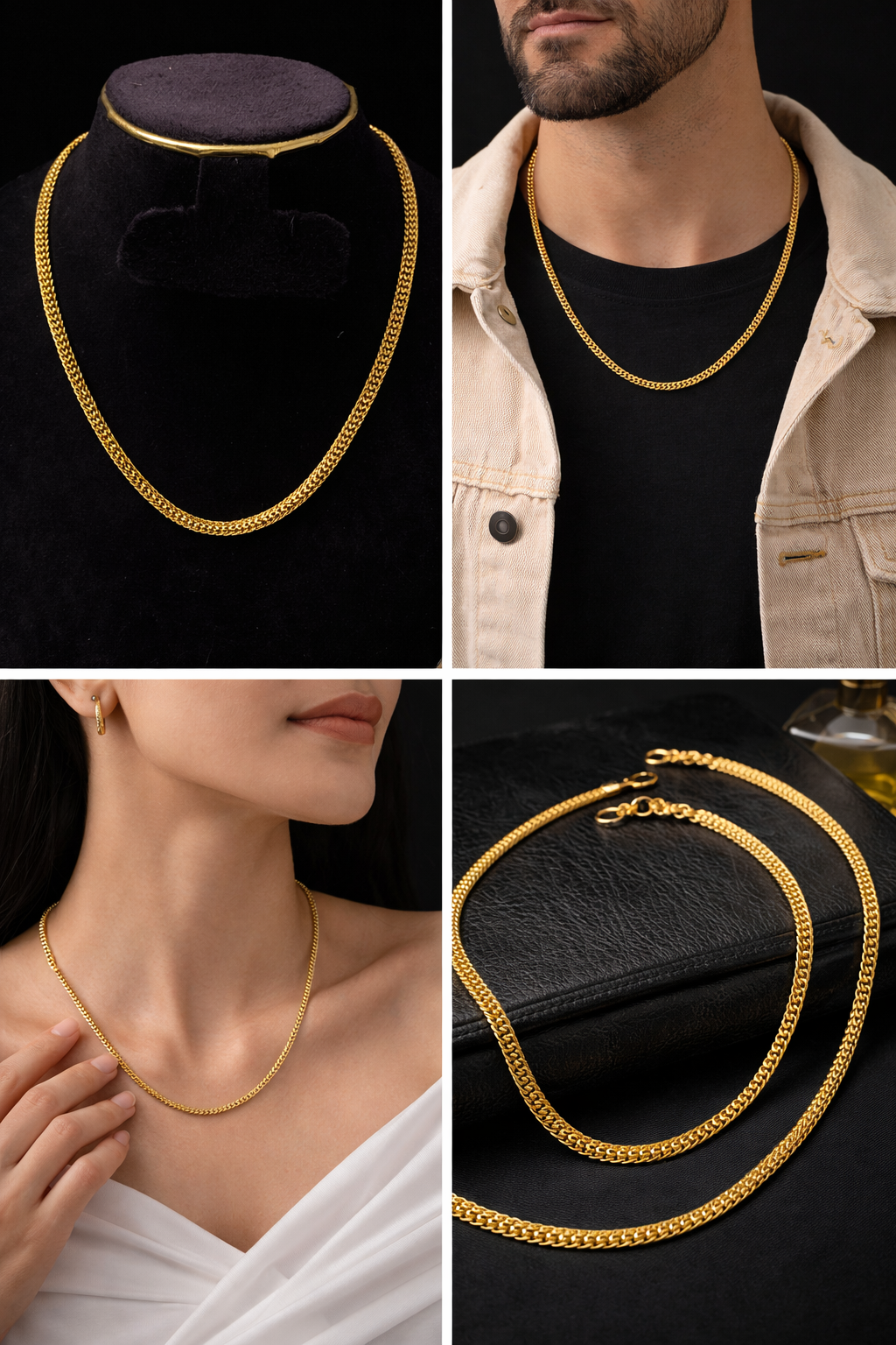 & Free ShippingA sleek and timeless gold-tone chain designed for everyday elegance. Crafted with a smooth, durable link pattern, this unisex chain offers a perfect balance of simplicity and sophistication. Ideal for daily wear, office styling, or layering with pendants, it complements both men’s and women’s looks effortlessly.